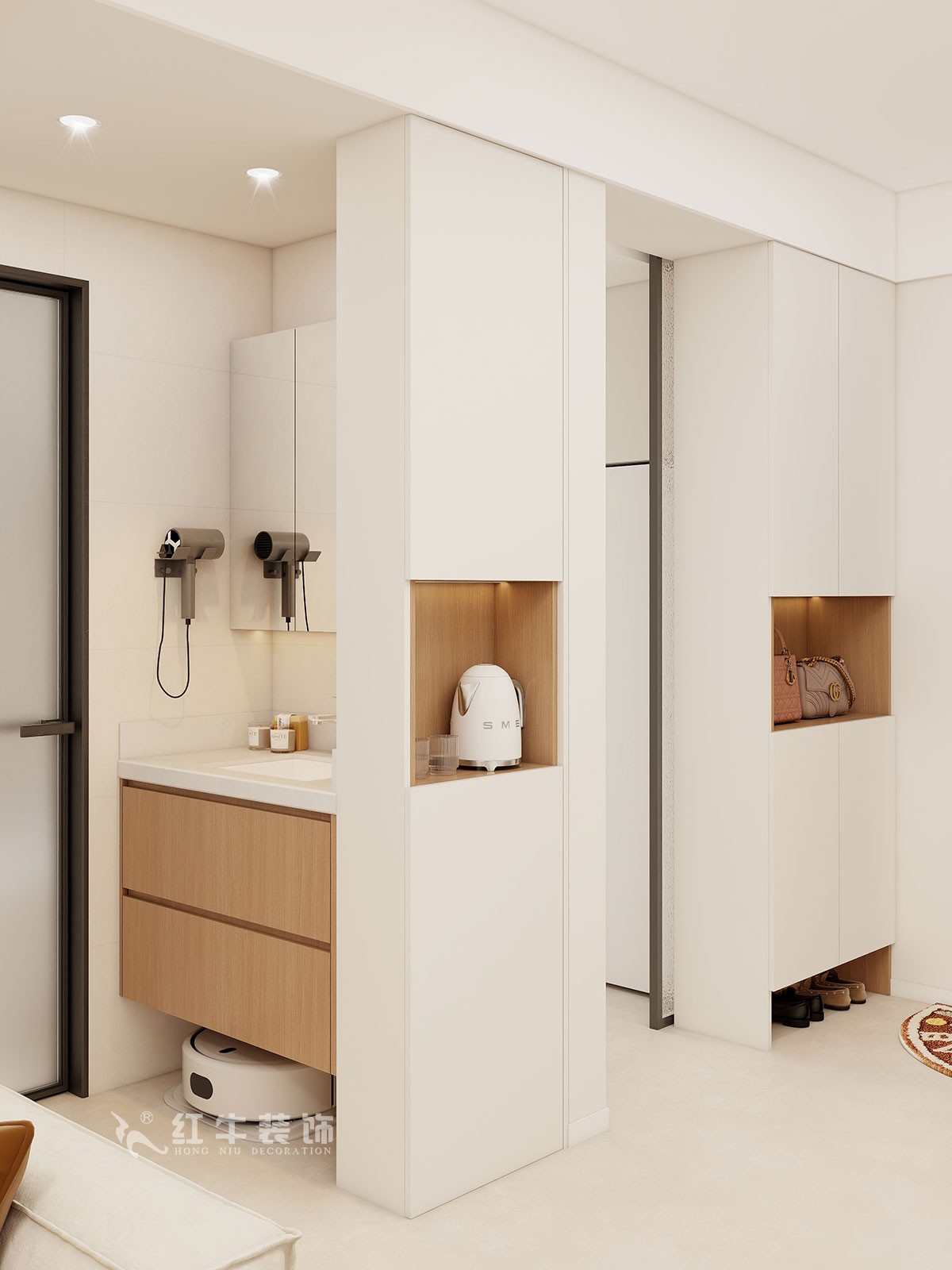 本案簡(jiǎn)約風(fēng)格,客戶需求增加儲(chǔ)物功能,在設(shè)計(jì)過(guò)程中方案墻體改動(dòng)不多,可以滿足基本需求。擴(kuò)大空間增加儲(chǔ)物功能,能夠滿足客戶所提需求。