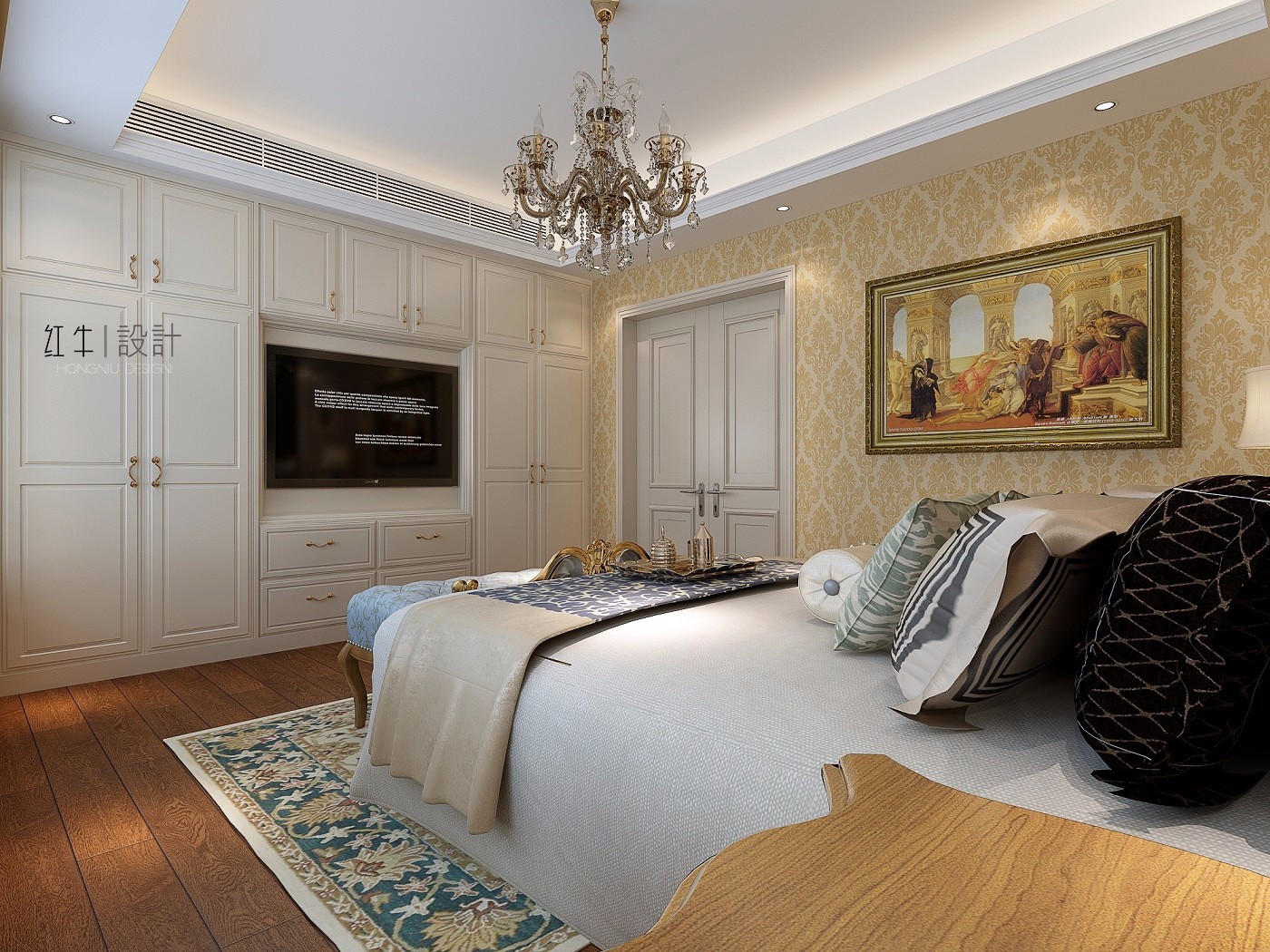 電視的四周安置了很多柜子,平時(shí)可在此存放一些生活物品,讓房間更加整潔、有秩序。整個(gè)房間都是對(duì)稱(chēng)設(shè)計(jì),非常和諧統(tǒng)一。