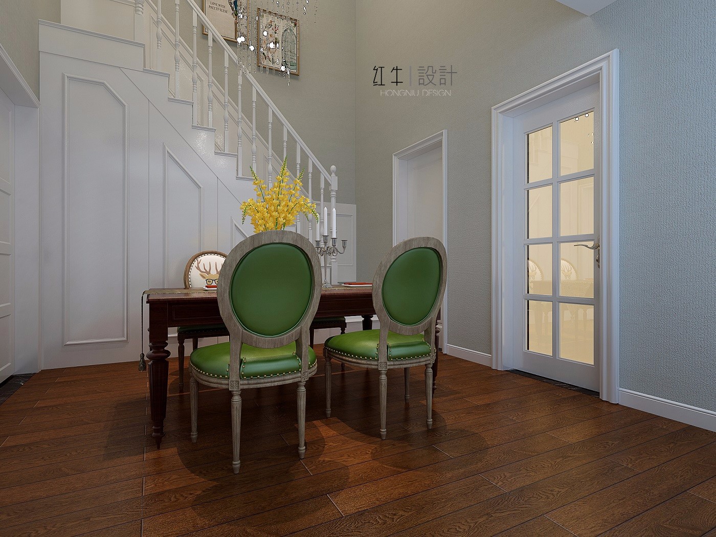 二樓的小客廳延續(xù)了一樓客廳的典雅風(fēng)格,小小的空間通過(guò)地毯、裝飾畫(huà)、吊燈與歐式沙發(fā)的搭配變得華貴優(yōu)雅。