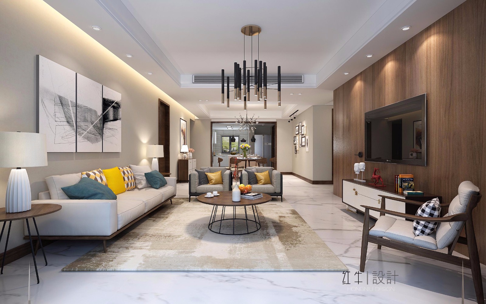 本戶型基本保留了原始結(jié)構(gòu)墻體,此案設(shè)計采用了北歐風(fēng)格,首先進(jìn)行合理的功能區(qū)域劃分,在滿足儲物需求的同時,要讓每個空間都能通風(fēng)并采光。在設(shè)計的時候,居室色彩主調(diào)以白色,家具以原木色為主,采用嵌入式石膏吊頂和線條,搭配精致的水晶吊燈,營造出浪漫的感。以磚面作為地面裝飾材料,有很好的光澤感,在沙發(fā)區(qū)鋪上大幅花紋地毯,使空間區(qū)域劃分更加清晰。