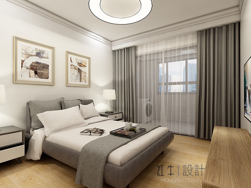 白色灰簾的搭配非常適合現(xiàn)代風(fēng)格,此外,床品也是灰色的,總體顯得很有格調(diào),反射出前衛(wèi)現(xiàn)代的氣質(zhì)。