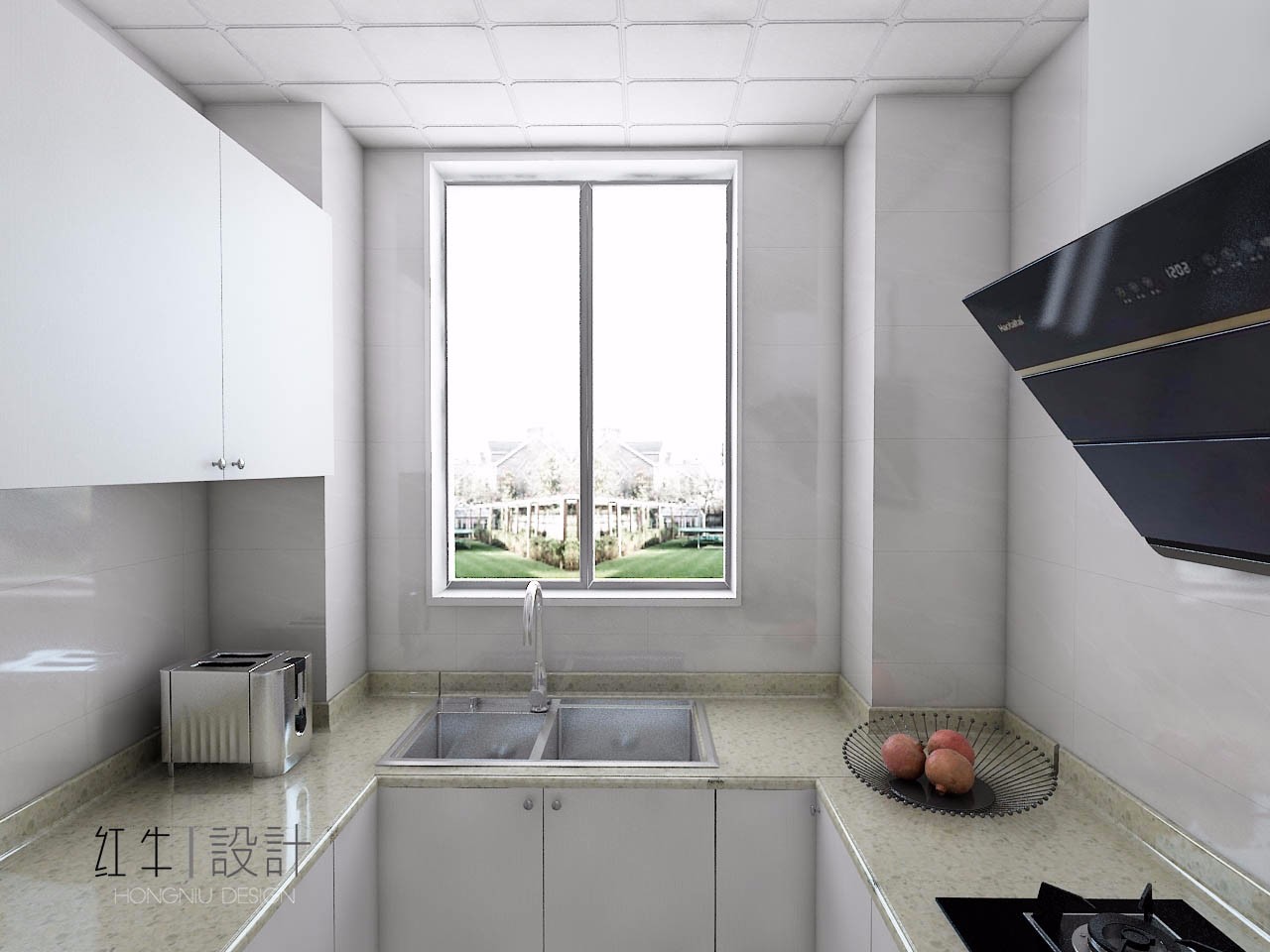 拉開白框透明玻璃門,就能進入廚房。廚房安裝了雙水槽,雙槽可以分類清洗,使用起來很方便。