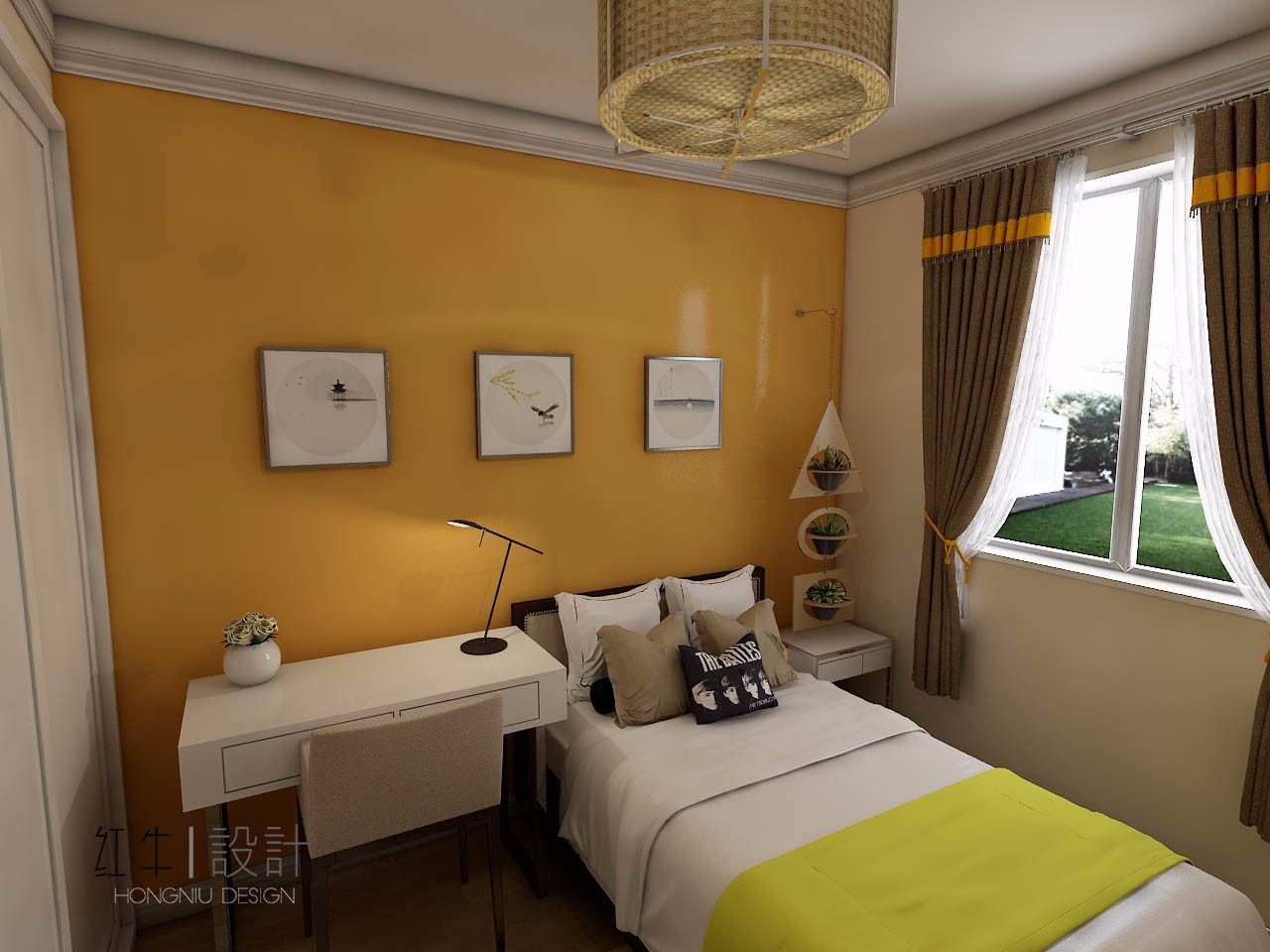 鮮亮的橙色刷滿了整面墻,效果很別致,可以發(fā)現(xiàn),窗簾上也有彩條邊與其呼應(yīng)。