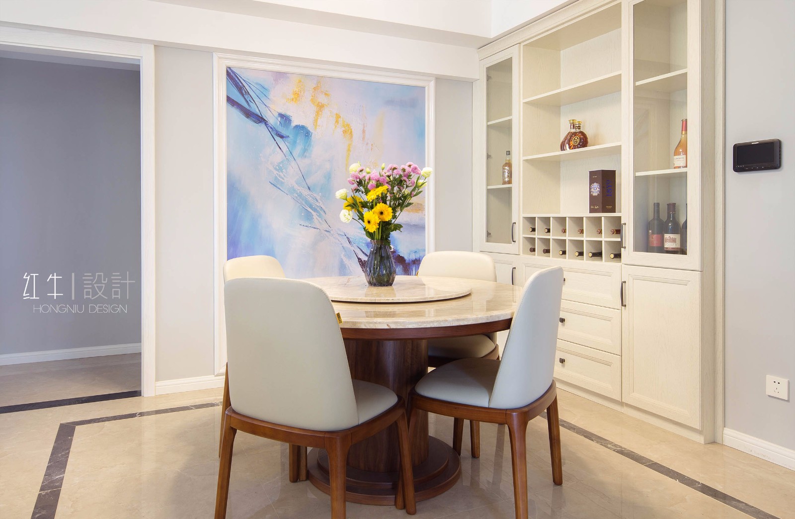 餐桌旁的柜子算是將餐邊柜和酒柜合二為一,既能滿足多樣化的收納需求,也有很好的裝飾作用,顯得溫馨有格調(diào)。