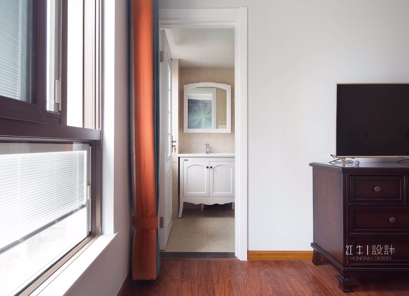 主臥帶有一個(gè)衛(wèi)生間,白色和米色的搭配,在簡(jiǎn)潔中體現(xiàn)實(shí)用的功能。