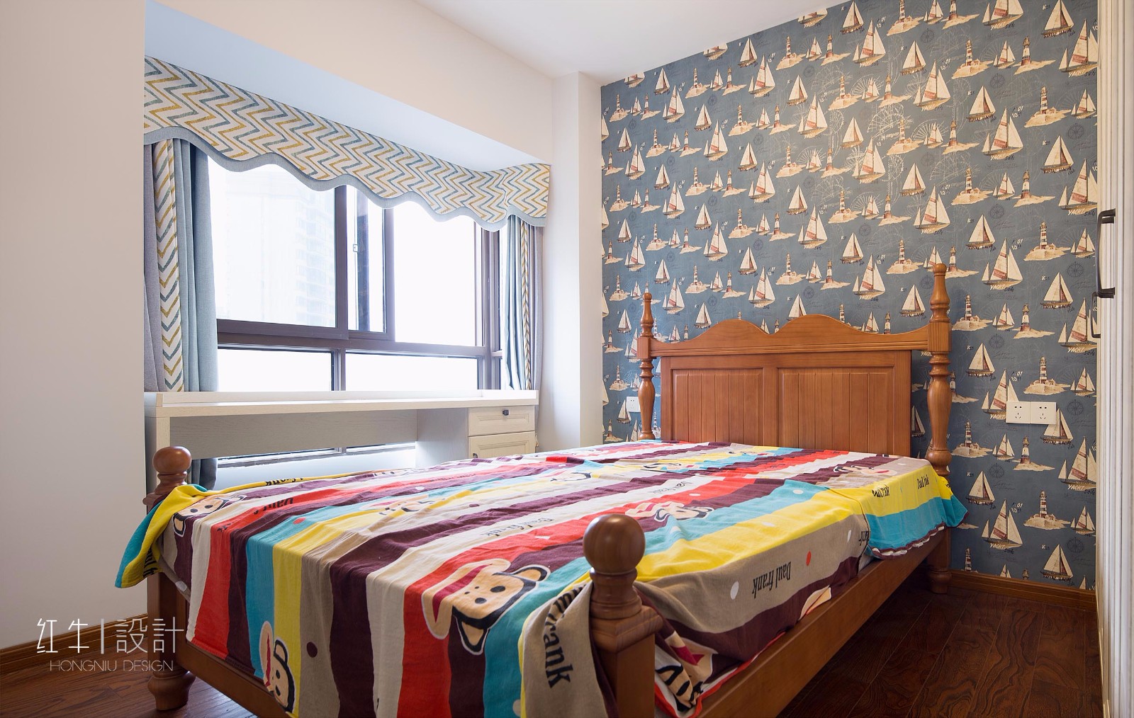 波浪平幔色調(diào)清新。藍(lán)色的背景墻搭配帆船造型,顯得年輕朝氣。