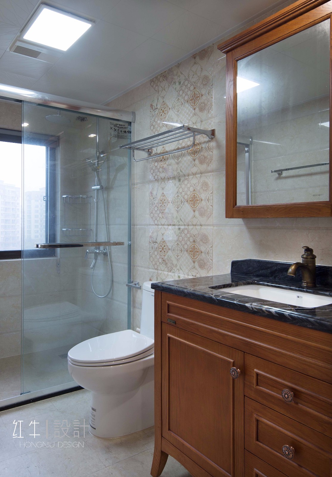馬桶后方的墻上,貼上了花紋瓷磚,低調(diào)中又有變化。