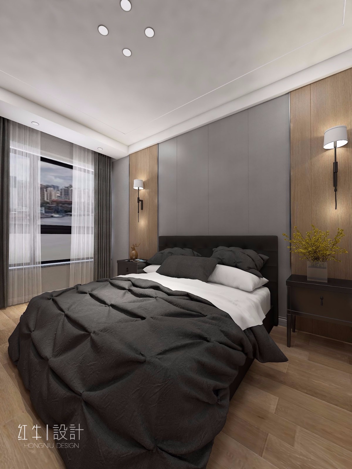 本案設(shè)計(jì)風(fēng)格定位為輕奢風(fēng)格,房間內(nèi)整體運(yùn)用了黑白灰搭配木飾面,一些線條運(yùn)用極簡(jiǎn)門板進(jìn)行裝飾,加上暖暖的燈光,使整個(gè)空間有種輕奢的感覺。