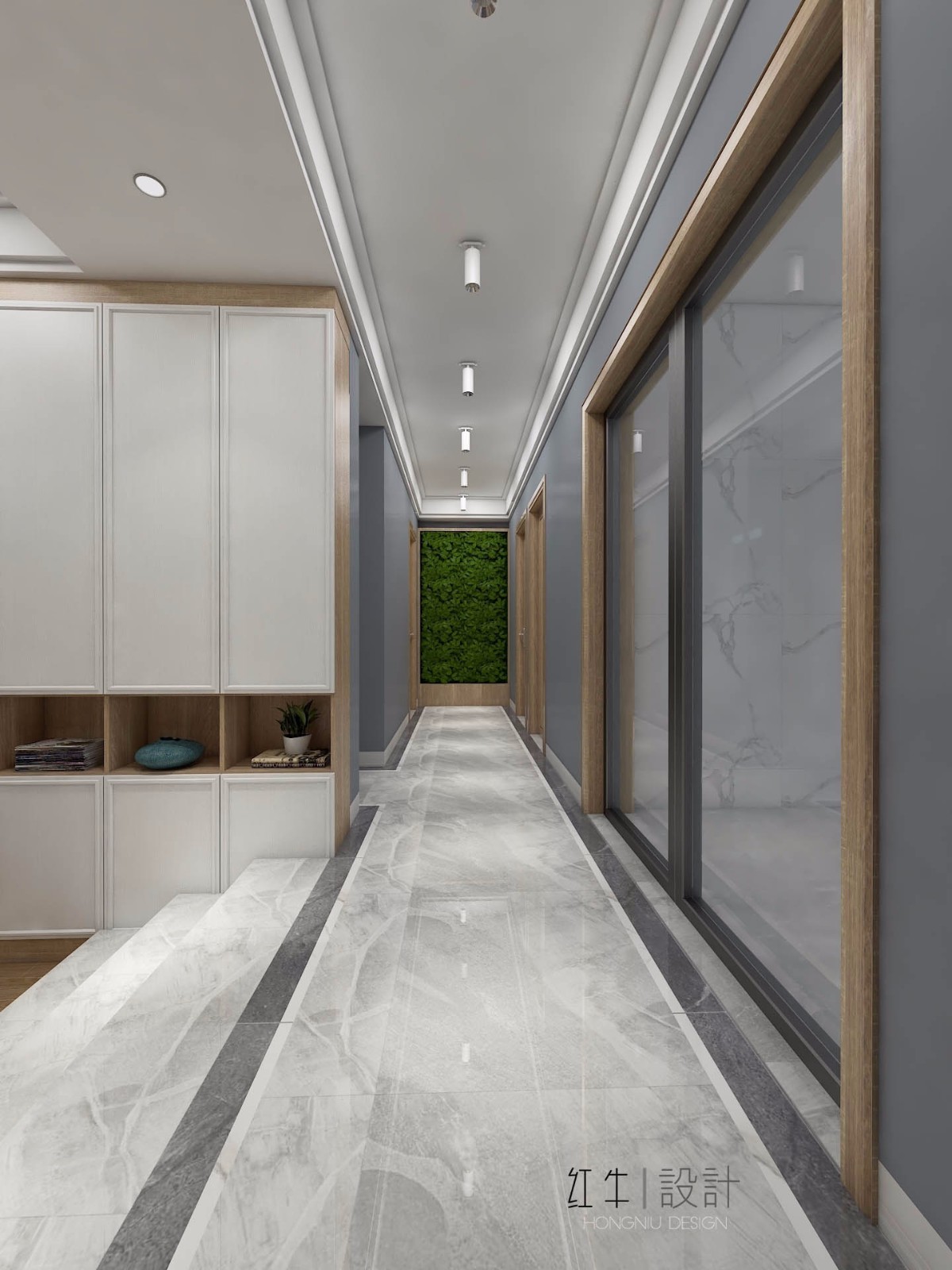 為了使空蕩蕩的走廊沒(méi)那么單調(diào),在過(guò)道盡頭設(shè)計(jì)了一面綠植墻,不僅美化了走廊的視覺(jué)效果,還提升了空間的整體格調(diào)。