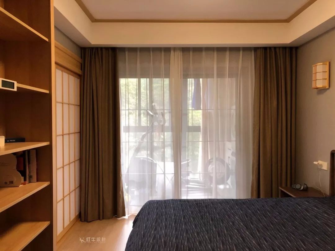 臥室依靠木質(zhì)家具本身的線條感,搭配同樣風(fēng)格的日式壁燈,給人以休閑自在的感受。
