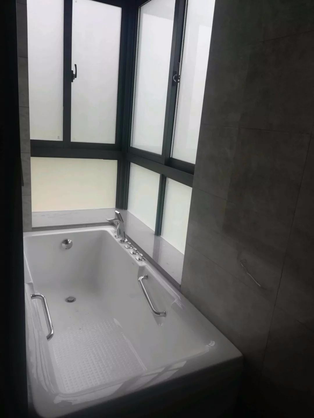 灰色系的衛(wèi)生間具有優(yōu)雅質(zhì)感,衛(wèi)生間一角還放置了浴缸,工作一天之后可以盡情享受泡澡的放松時(shí)光。
