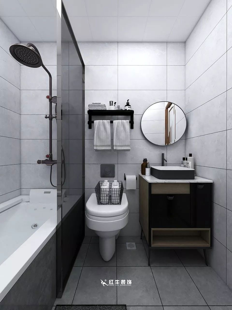 這是主臥附帶的衛(wèi)生間,色調(diào)延續(xù)了主臥黑白灰的現(xiàn)代風(fēng)格。