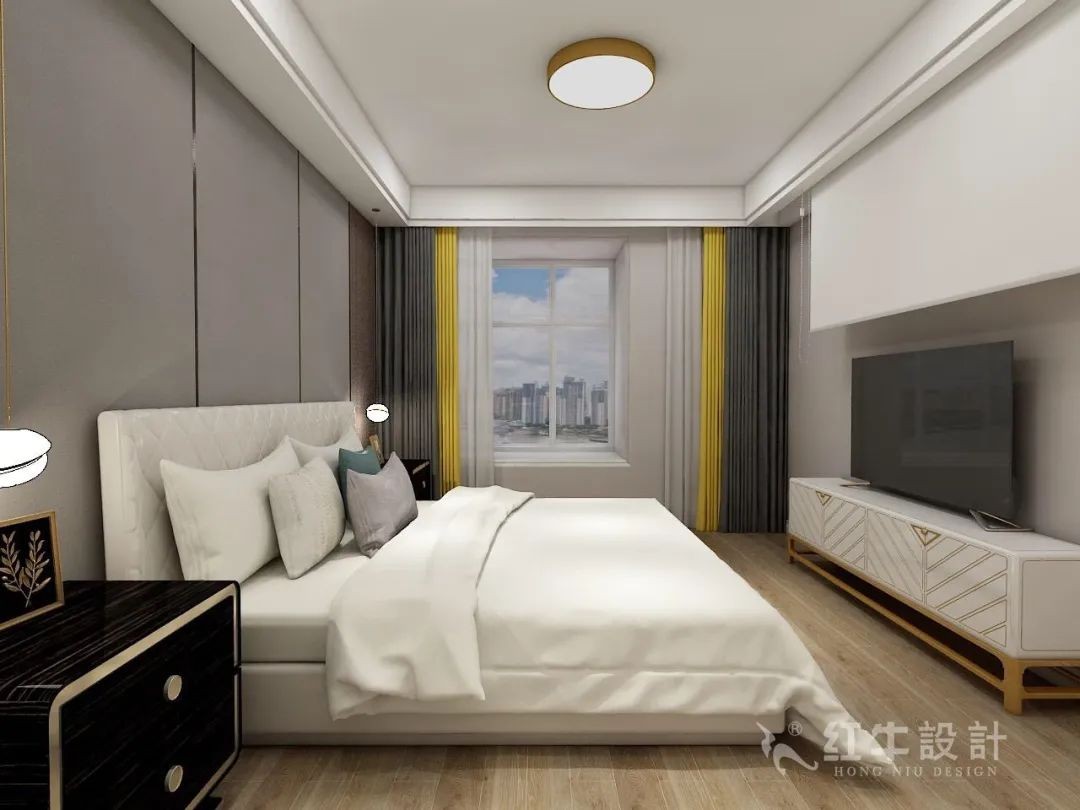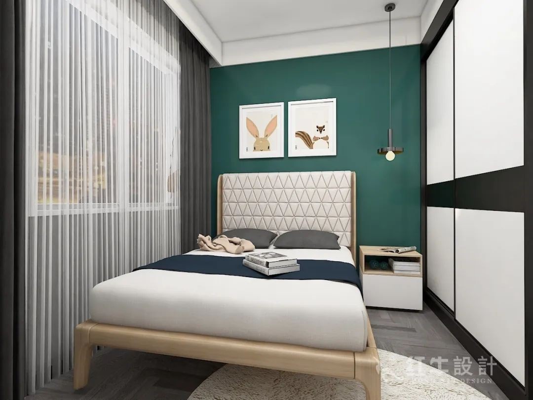 臥室延續(xù)了客廳素雅的風(fēng)格,空間層次分明,線條利落,搭配原木地板,顯得低調(diào)溫馨。