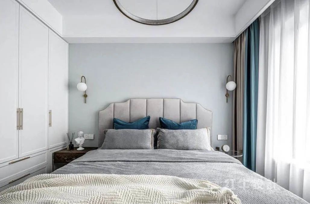 主臥延續(xù)客廳的絲絨與金屬搭配風(fēng)格,又進(jìn)一步做了減法,在保持輕奢質(zhì)感的前提下讓人感覺(jué)更加舒適和沁人心脾,非常適合作為休息空間。