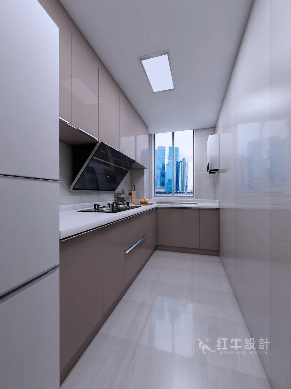 相對(duì)狹長(zhǎng)的廚房空間,設(shè)計(jì)成L型非常合適,整體造型簡(jiǎn)潔又大氣。