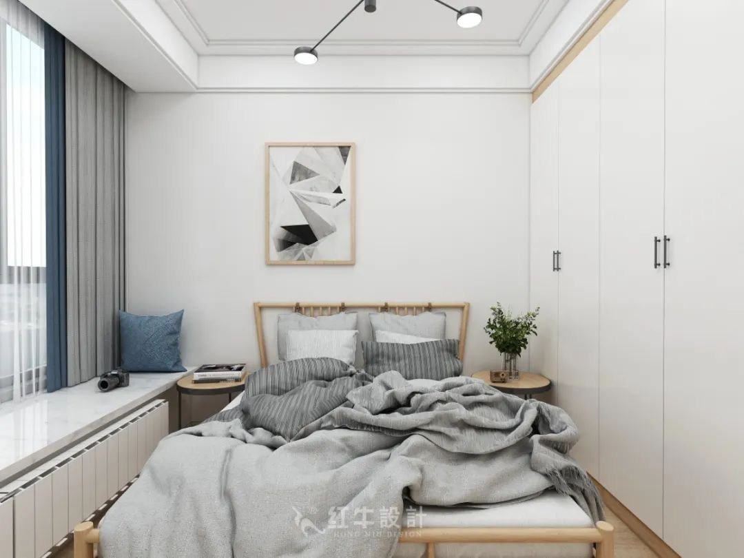 次臥室選擇了白色基調(diào),在相對小的空間里,視覺上顯得更加寬敞。圓潤的床體和茶幾,能夠避免磕碰時受傷。