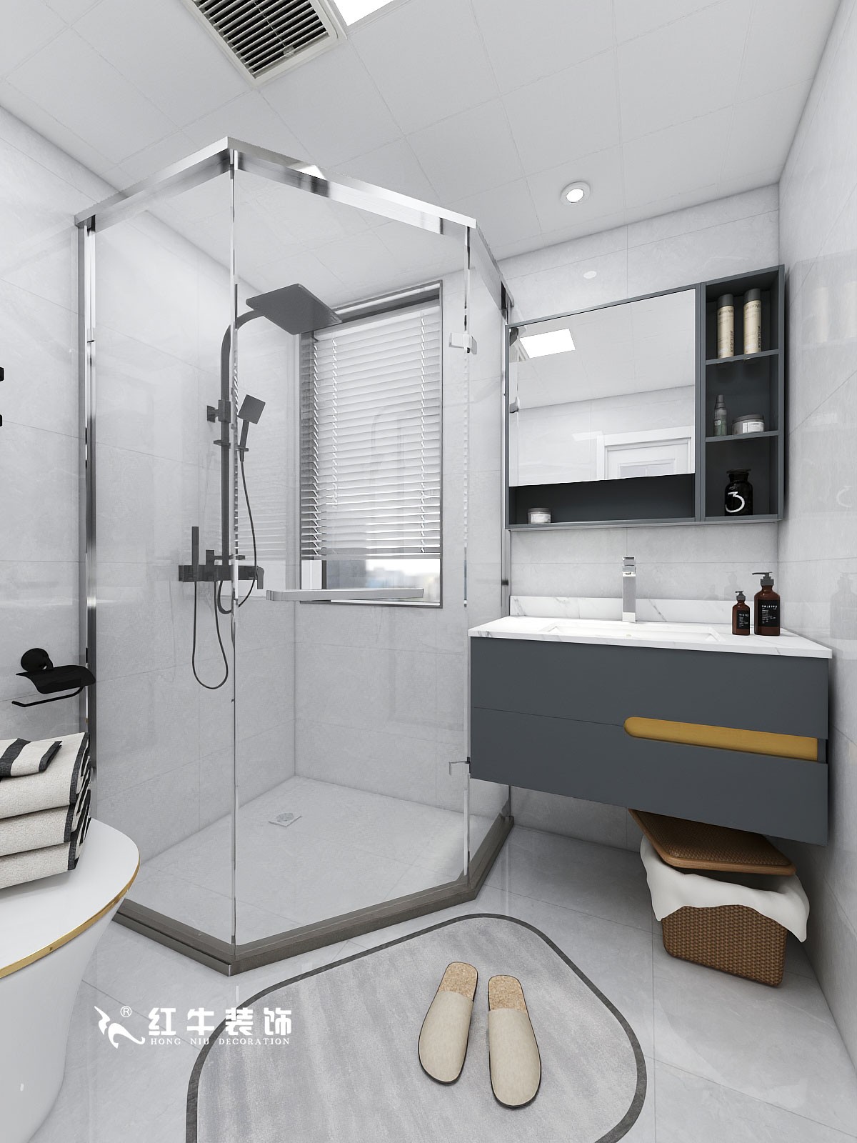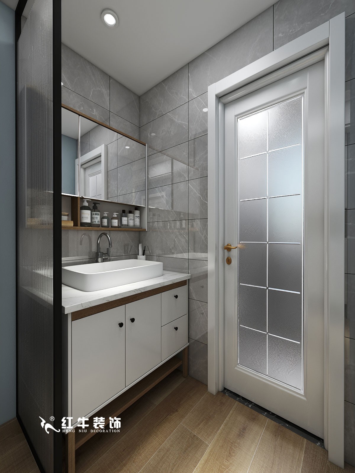 外置洗手臺(tái)設(shè)隔斷,起到了保護(hù)個(gè)人隱私的作用,而且更加鮮明地將客衛(wèi)與其它區(qū)域分隔開(kāi)來(lái)。