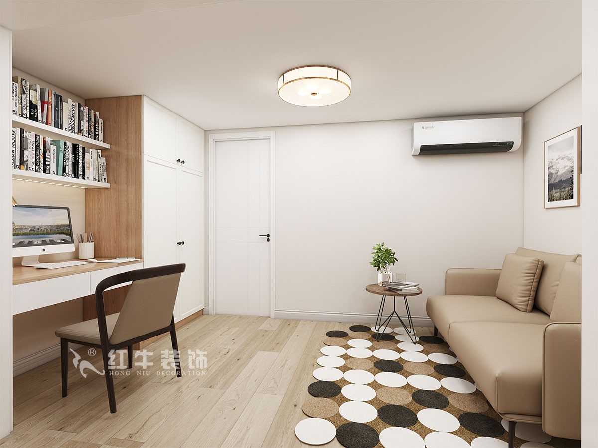 次臥具有書房的功能,創(chuàng)造了一個(gè)獨(dú)立的工作環(huán)境,此外,還專門配備了沙發(fā)床,偶爾家里來(lái)客人需要留宿時(shí),用手一拉開就打造出一個(gè)簡(jiǎn)易的小床,書房立馬變客臥。