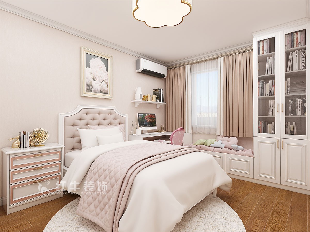 在次臥的布置上,做了書桌和飄窗卡座以及書櫥的設(shè)計(jì)。合理的利用空間的同時(shí)方便看以后寶寶成長學(xué)習(xí)的需求。
