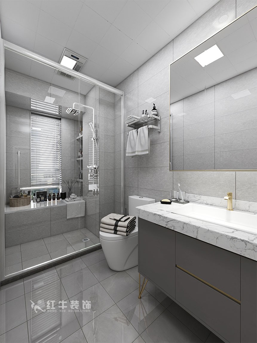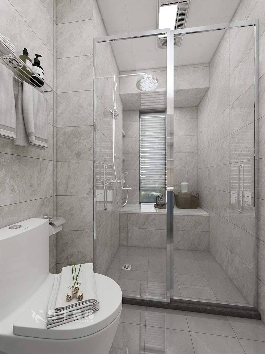 淋浴區(qū)部分設計了壁龕,衛(wèi)浴用品可以很方便地收納其中,使得衛(wèi)生間內(nèi)保持整潔美觀。
