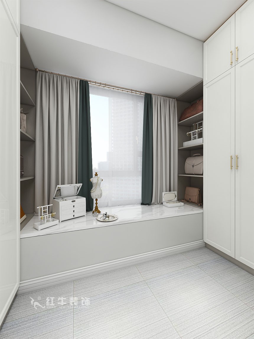 通過設計師的改造,把北邊次臥和主臥打通形成套間,南邊作為休息區(qū),北邊做成衣帽間。