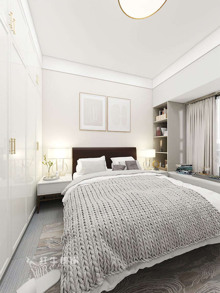 客臥的整體設計較為簡潔,展現(xiàn)出一種大方雅致的格調(diào)。